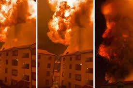 Reports reaching the news station suggest that the explosion occurred after a gas leak, which started a massive fire that quickly consumed the surrounding area.